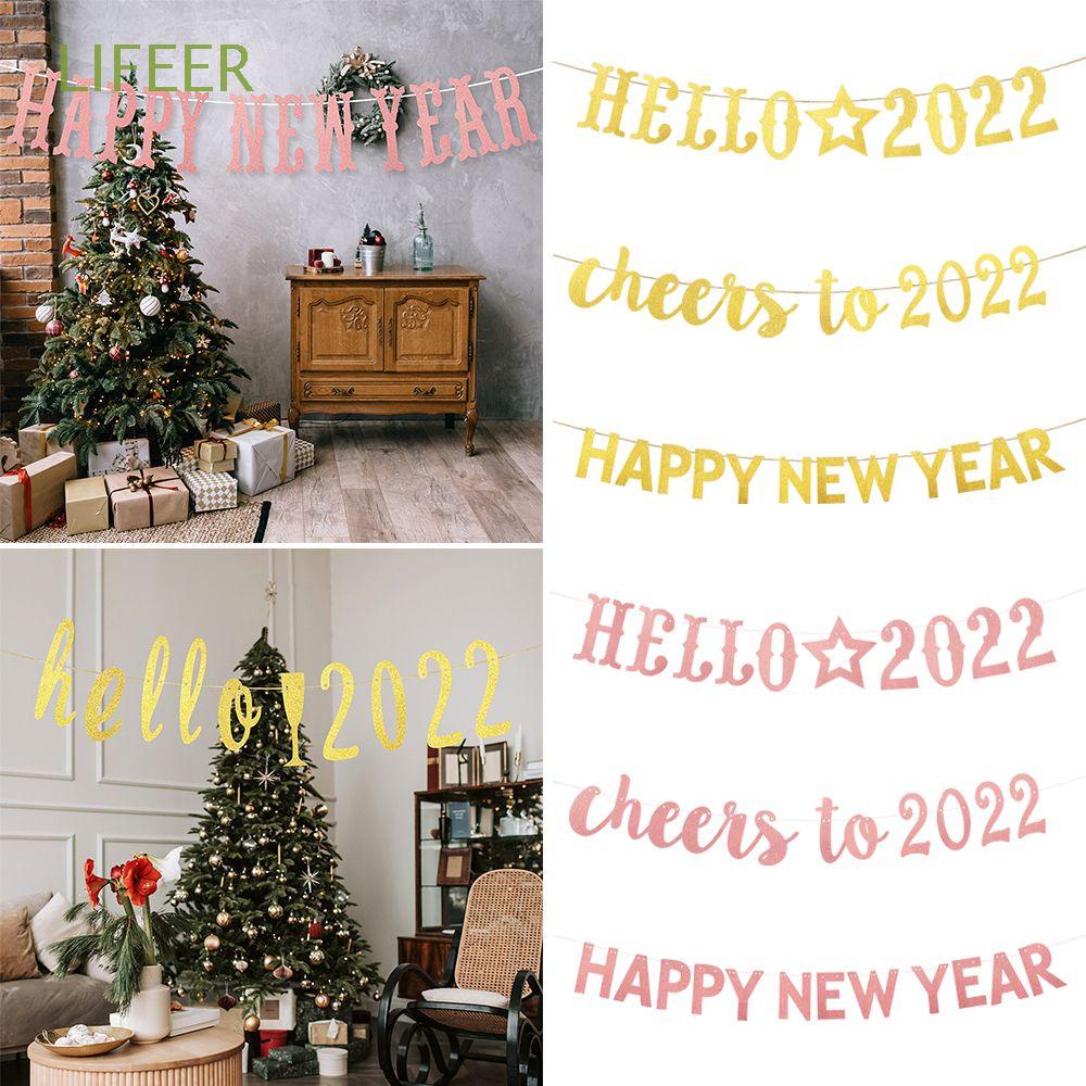 Lifeer Diy Gifts Bunting Banner Glitter Hello 2022 Hanging Flag New Christmas Decoration Party Decor Photo Booth Props Paper Garland Happy New Year | Shopee España from shopee.es